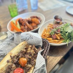 We traveled with a group of 9 to LA. On our way to Santa Monica Pier we stopped yo get lunch. This place is ama big! Bella was the best server for us. She was so pleasant and took very good care of us. I got the chicken club. Delicious. She made us Strawberry Lemonade in house. The chicken tenders were tender and juicy, and the breading was crunchy and flavorful. The fries were perfectly seasoned. Came out pretty fast too. They didn't have us wait long time, even though we were a big party. There was other staff that came by and checked on us. The views from the restaurant were nice. I really reconnect trying this spot!